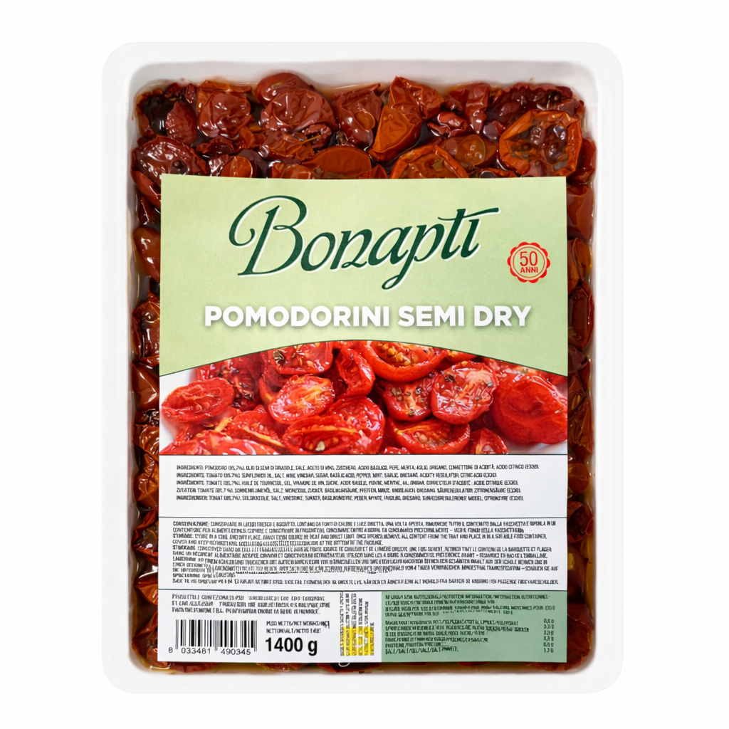 Gi rettene dine en perfekt balanse mellom saftighet og konsentrert tomatsmak. Våre italienske semi-tørkede småtomater er høstet på topp modenhet og skånsomt tørket for å bevare naturlig sødme, friskhet og struktur – ideelt for moderne HoReCa-kjøkken som ønsker både smak og visuell kvalitet